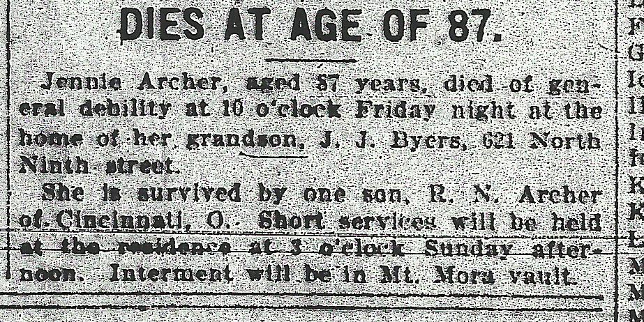 | Name: JANE GLOVER "JENNIE" ARCHER |